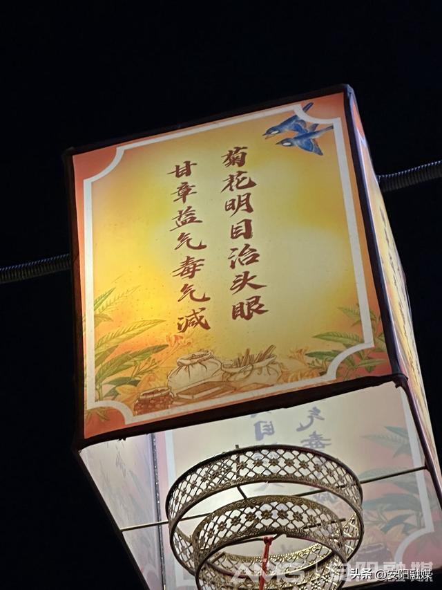 “菊花名目治头眼,甘草益气毒气减。”“心静神安市养生,闲谈莫论人非,静坐常思己过”…… 2月2日晚,随着夜幕的降临,安阳古城西大街灯火通明,如梦如幻,一盏盏悬挂于街头的中医药灯笼。朗朗上口的中医药格言,搭配统一的灯笼,既美观大方,又富有教育意义,提醒市民在欢度佳节的同时,也要注重身心健康,保持平和的心态,成为了传播健康理念的新亮点。(安阳融媒记者 赵晓凤 摄)